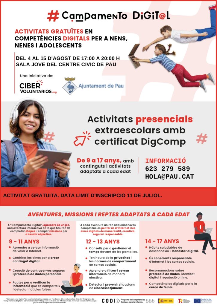 Agenda Campament digital per a infants i joves 04/08/2025 - 15/08/2025 Feu clic aquí per a més informació. < Entrada AnteriorEntrada Posterior >