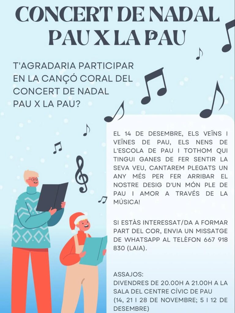 El pròxim 14 de desembre, els veïns i veïnes de Pau, els nens i nenes de l’escola i tothom qui vulgui fer sentir la seva veu, cantarem plegats per transmetre pau, amor i alegria a través de la música. 💫