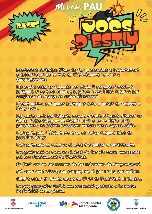 Us haureu d’inscriure a l’Ajuntament, ja sigui presencialment o emplenant la inscripció i enviant-la a festes@pau.cat