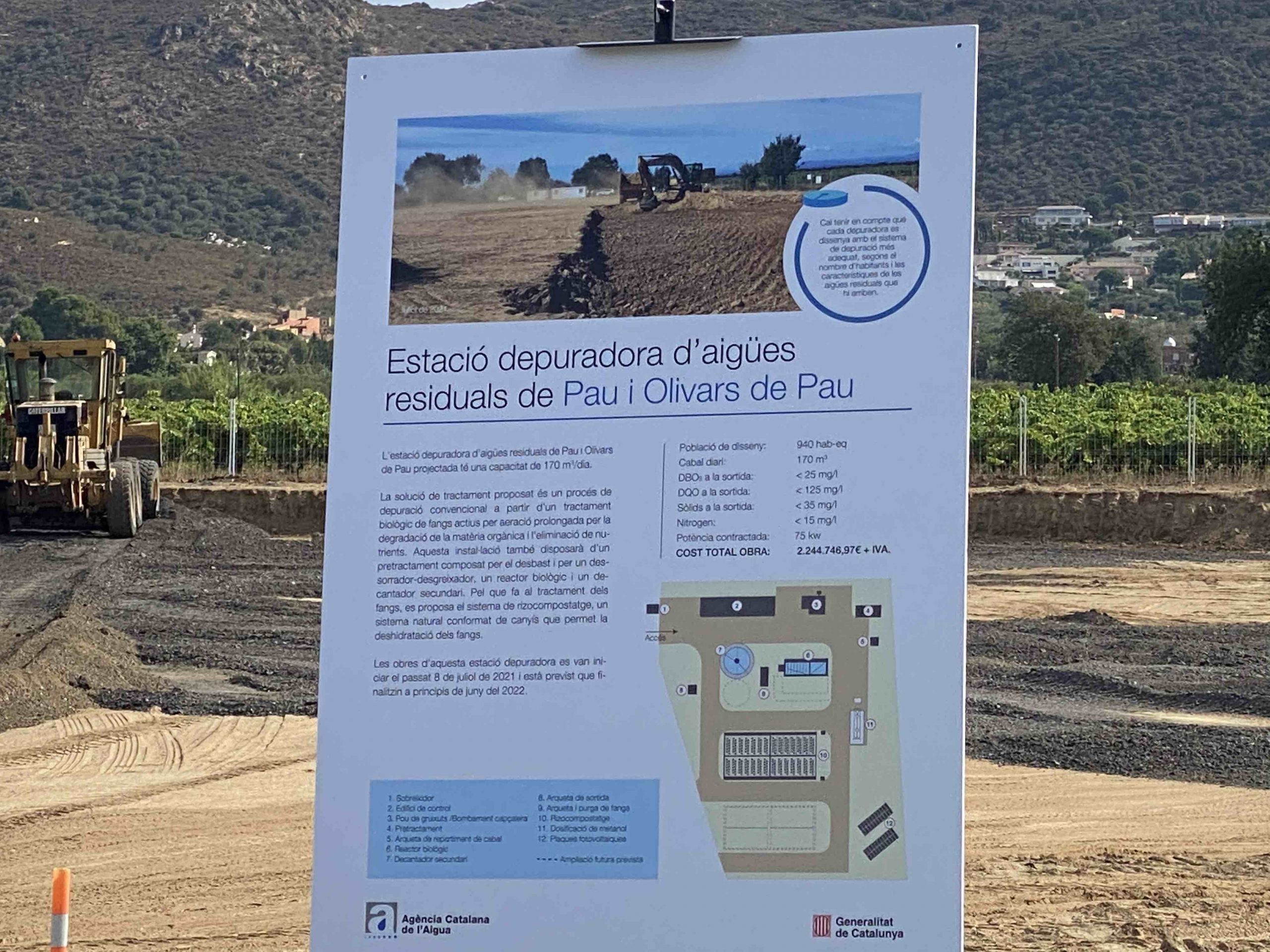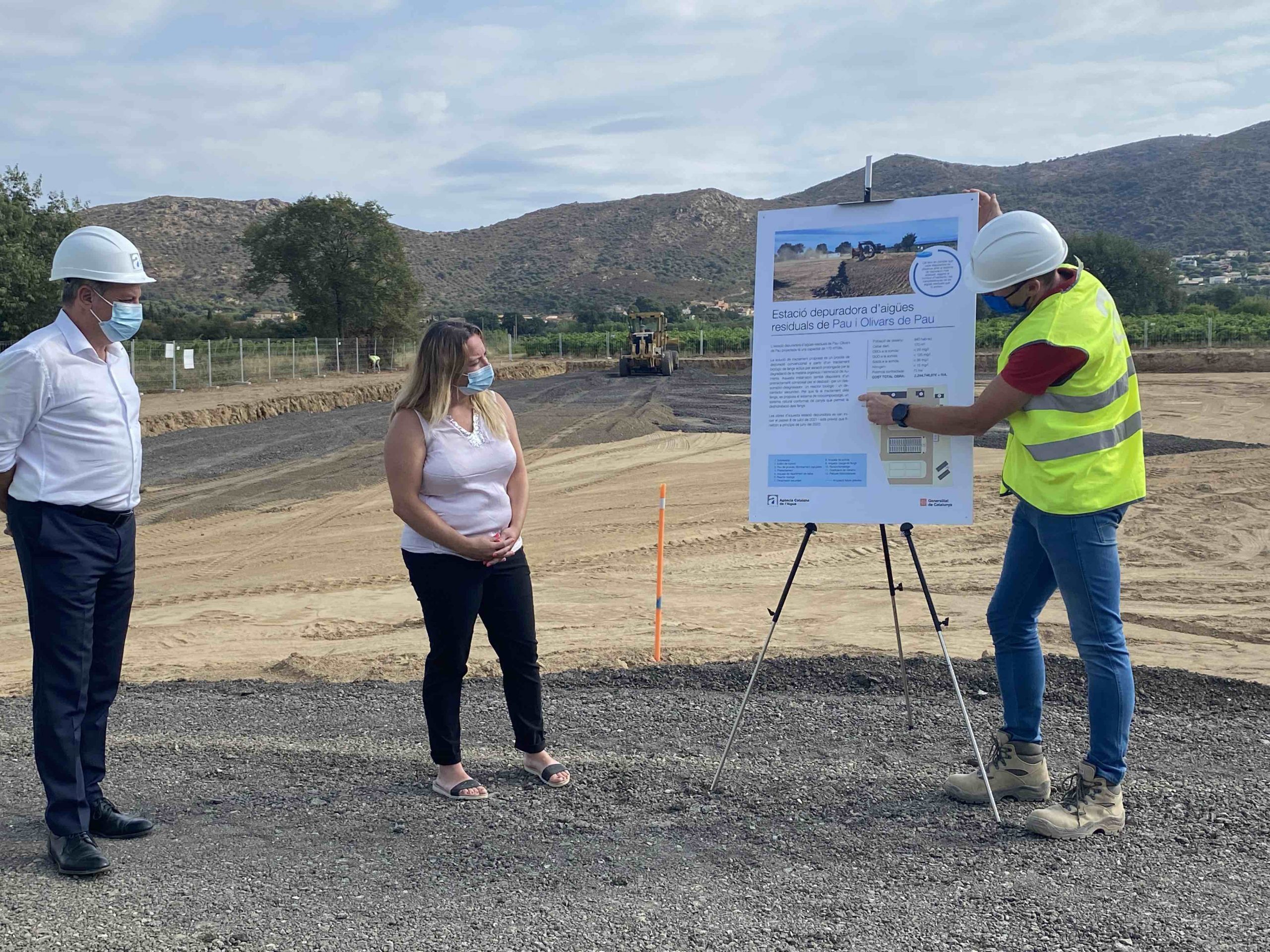 L’Agència Catalana de l’Aigua (ACA) ha començat les obres de la nova depuradora d’aigües residuals de Pau i Olivars de Pau. S’invertiran 2,7 milions d’euros en els treballs, que tindran una durada d’11 mesos. El director de l’ACA, Lluís Ridao, i la primera tinent d’alcalde de Pau, Yolanda Meneses, acompanyats d’altres autoritats, han visitat avui l’inici dels treballs.